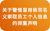 近日,我司發(fā)現(xiàn)有單位及個(gè)人假借我司名義,通過(guò)微信、電話(huà)、短信等形式向員工騙取個(gè)人信息,嚴(yán)重?fù)p害了員工···
